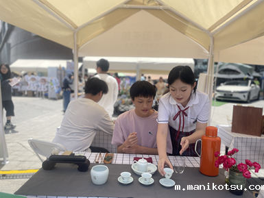 在4月24日启动的“匠心汇聚、雨你同行”雨花经开区文化市集活动中,茶学院优秀学生代表和刘菁宇、刘玉娇等入党积极分子8人组成实践先锋队,开展炒茶工艺展示、安化黑茶历史讲解及茶文化直播等特色项目。活动现场设立“先锋示范岗”,入党积极分子刘玉娇同学通过茶艺展演、非遗互动等形式传承中华文化基因。