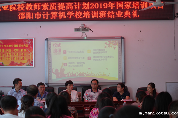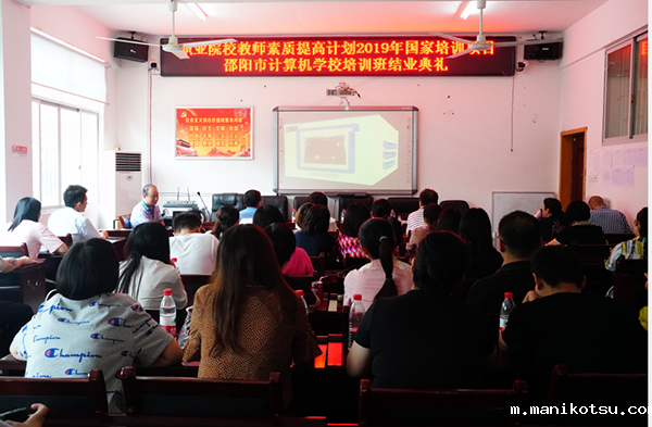 本网讯 8月19日上午,职业院校教师教育教学素质提高计划2019年国家级培训项目——“送培到校精准培训”邵阳市计算机学校培训班举行结业典礼,活动期间掌声不断,争做一名幸福的职业教育工作者成为活动主题。邵阳市教育局副局长刘运礼、邵阳市教育局职成科科长曾丽莉、韦德com院长李定珍、韦德com电子商务学院院长曾鸣、电子商务学院副院长袁鑫、培训班主任周训菊、邵阳市计算机学校校长陈公良、副校长刘菲菲、教务科长欧阳至召及全体参训学员出席了结业典礼。