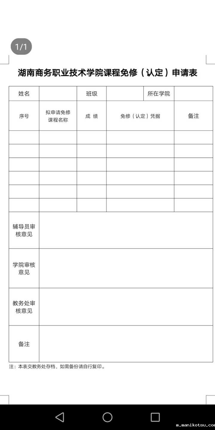根据湘商职院发[2017]84号《韦德com学生成绩管理办法》,符合免修与成绩认定条件的学生,可申请免修相关课程或认定相应课程成绩。学生填写《韦德com课程免修(认定)申请》(见附件),并附相关考试成绩单或相关证书复印件,请各二级学院务必严格审核原件,并在复印件上签署意见。驾驶证抵扣公选课学分者,请在驾驶证复印件上注明获得证件的时间及驾校名称,否则不予批准。普通话水平考试在校内报名参加考试的已计算学分,不需要重新申请。