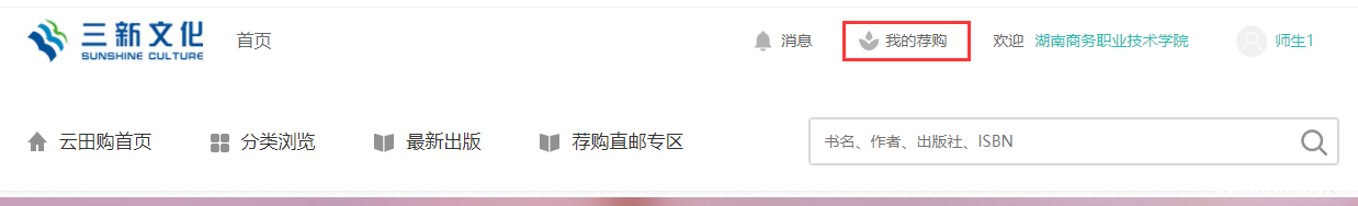1.登录成功后,请选择“读者荐购”,进入荐购页面“云田购首页”。