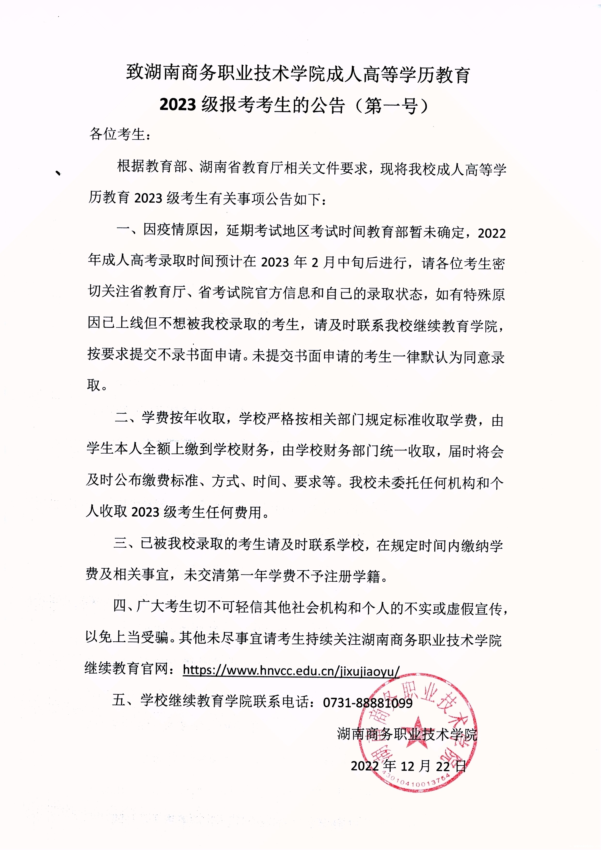 致成人高等学历教育2023级报考考生的公告(第一号)