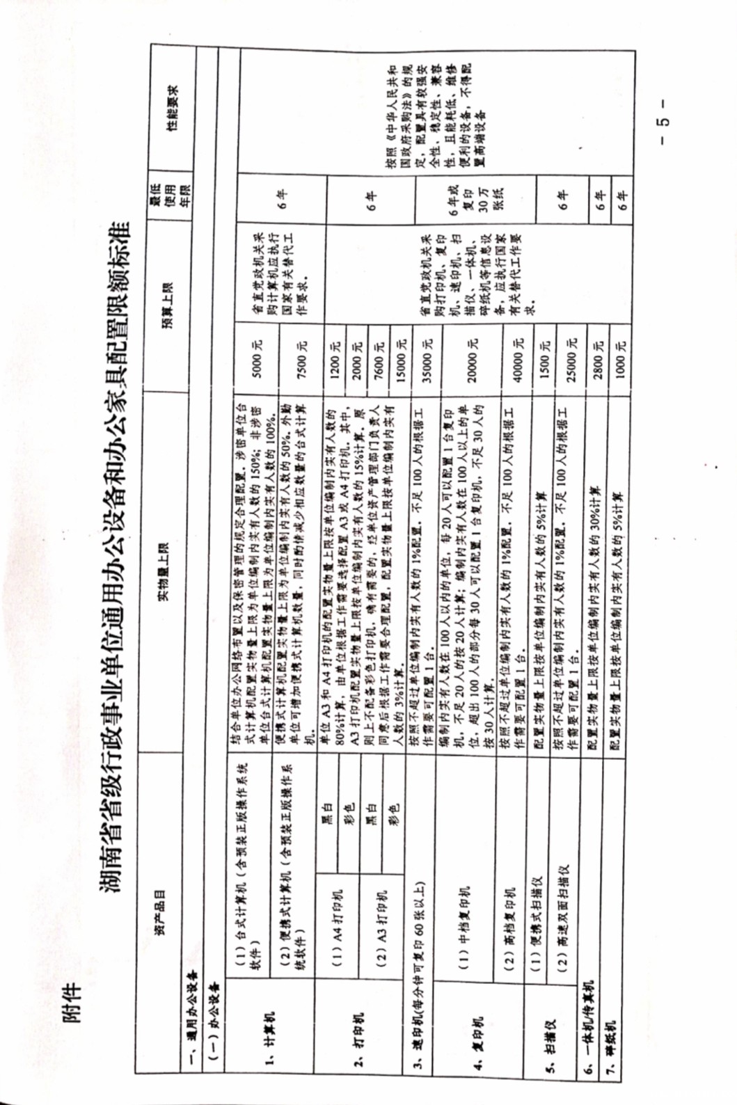 湘财资[2020]15号湖南省省级行政事业单位通用办公设备和办公家具配置限额标准
