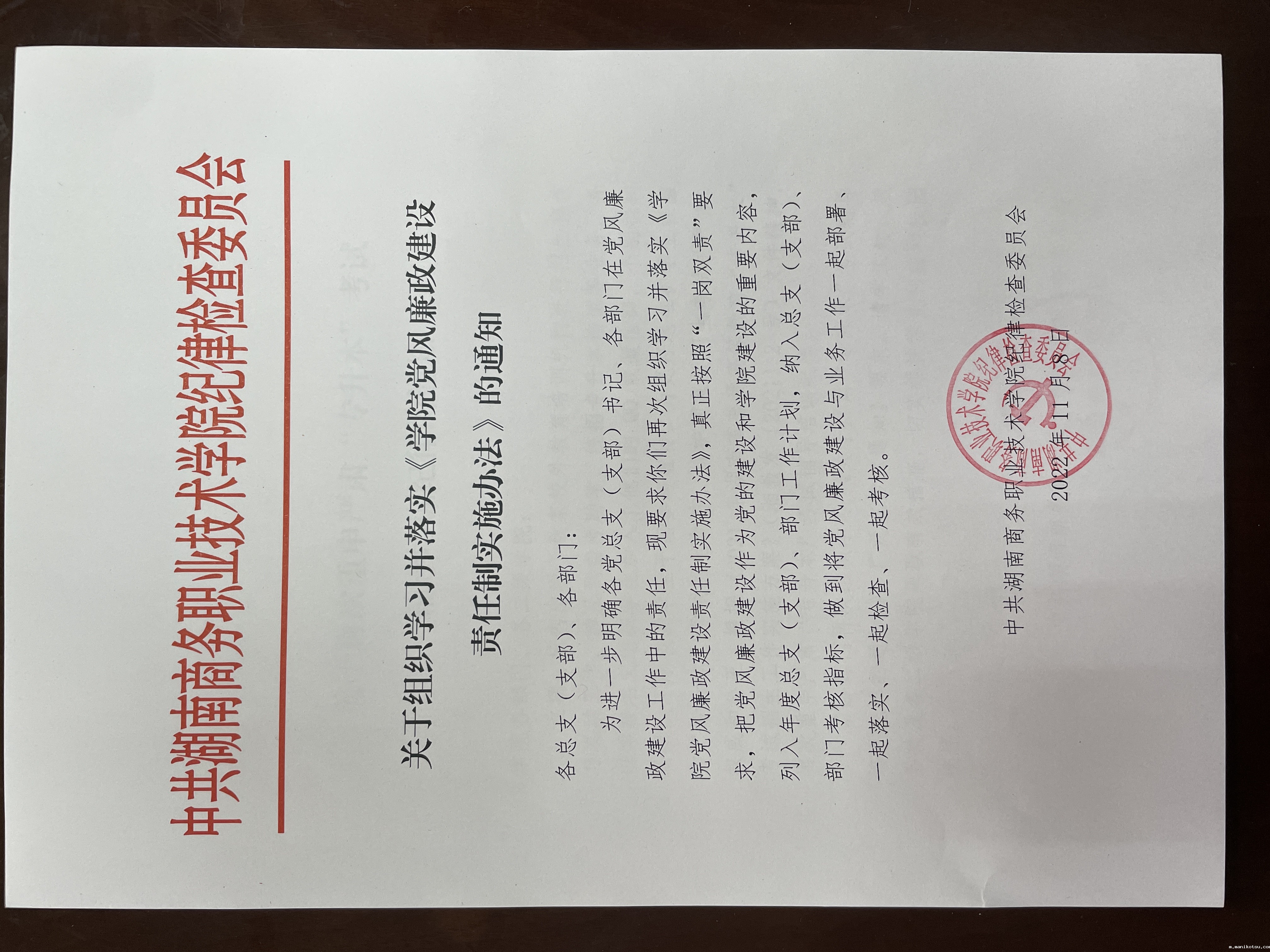 关于组织学习并落实《学院党风廉政建设责任制实施办法》的通知