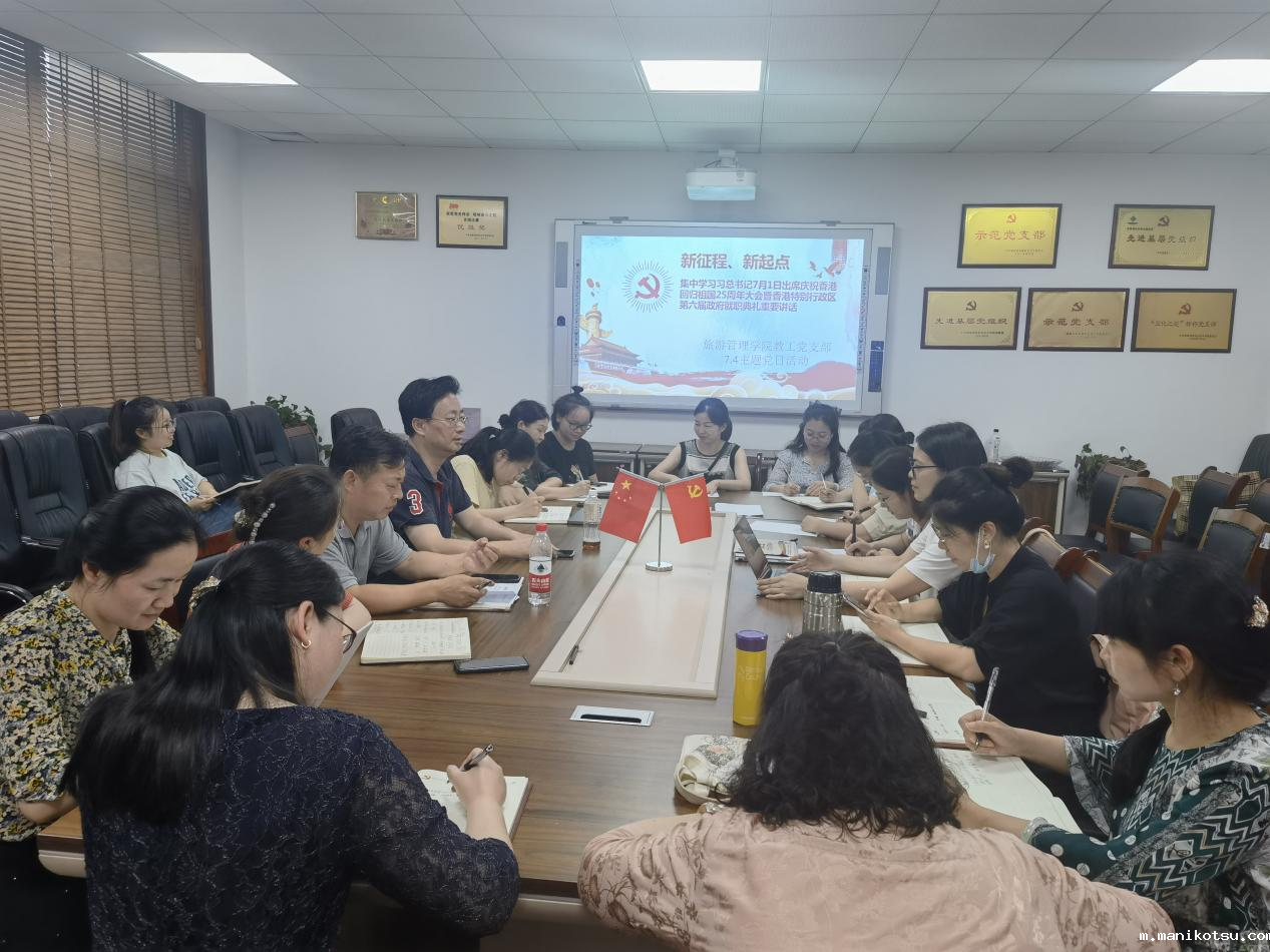 7月4日,旅游管理学院在办公楼207组织集中学习《习近平总书记7月1日出席庆祝香港回归祖国25周年大会暨香港特别行政区第六届政府就职典礼重要讲话》。会议由支部书记蒋术良同志主持。会议还邀请到了校党委副书记廖志刚同志参加。