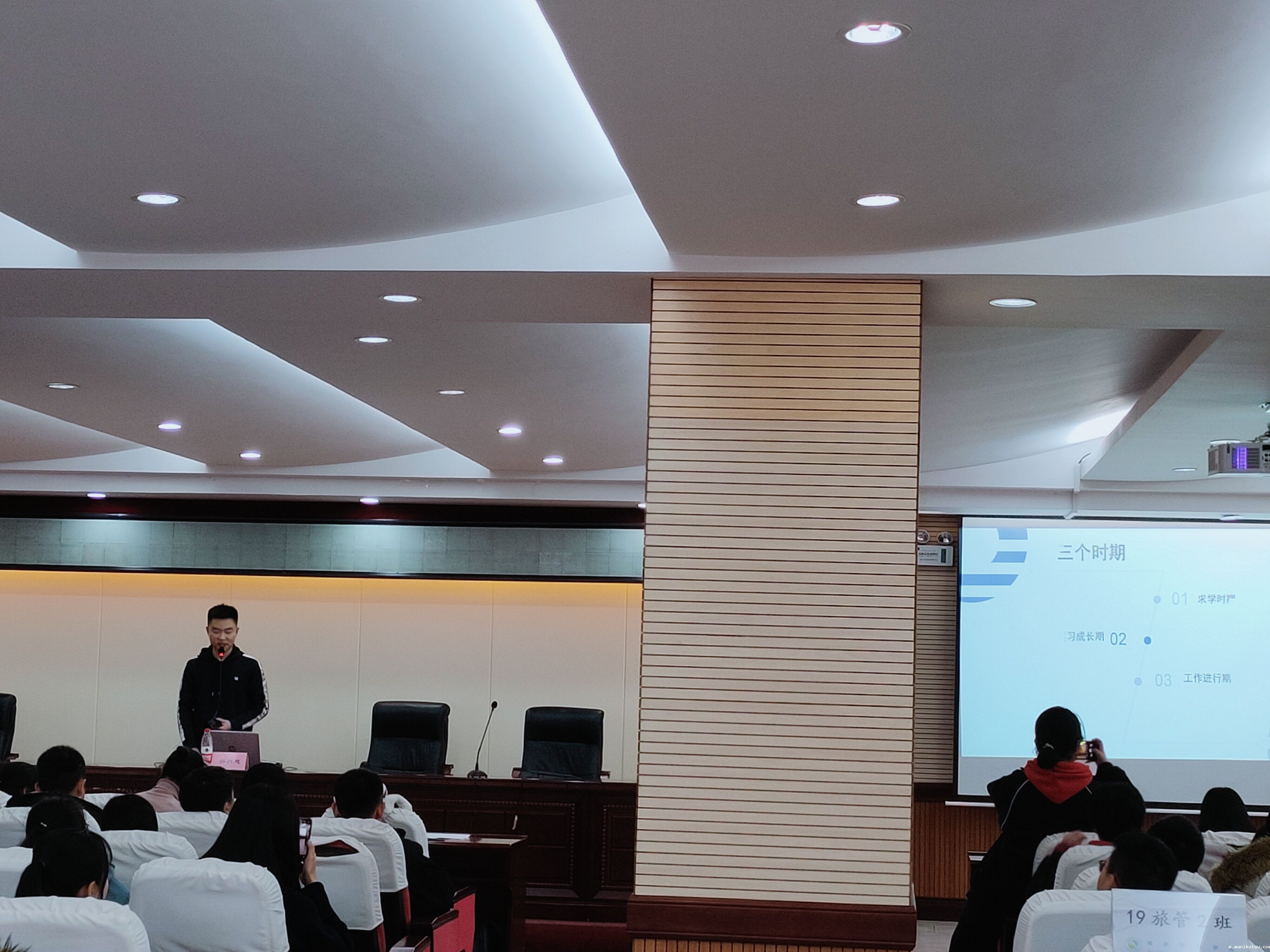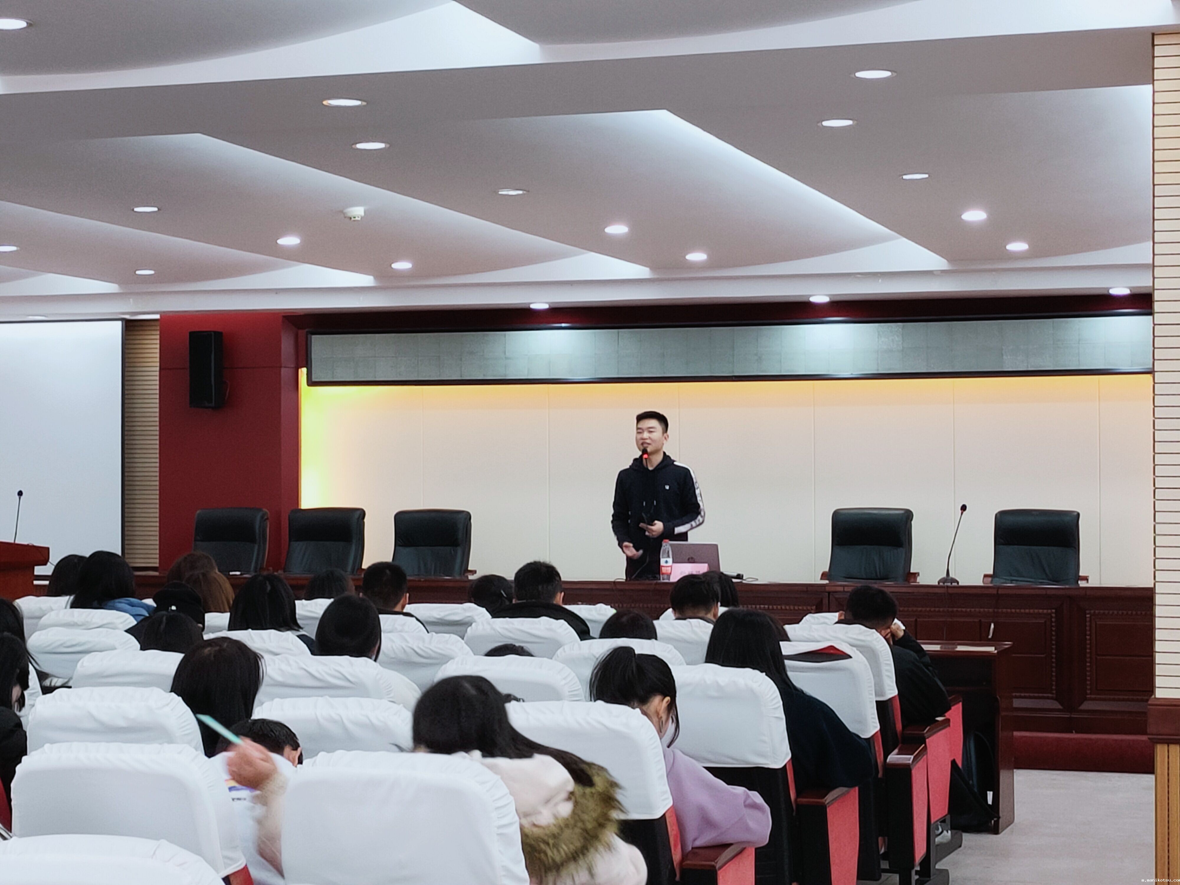 大会开始前,首先由陈艳陈院长代表广大师生对谷祥慧学长的到来表达了热烈的欢迎并邀请他进行发言。谷祥慧学长是省级优秀毕业生,先后获得“张家界导游竞赛一等奖”“湖南省导游大赛十四名”等诸多优秀奖项。学长从他最初的学生时代讲起,从他的实习期到工作期,在整个讲话过程中,他与我们分享了他自己宝贵的学习和工作经验。