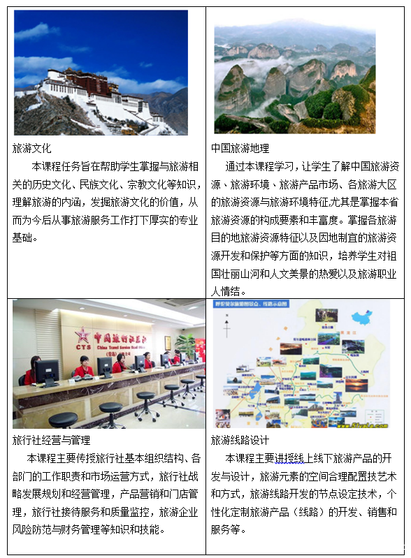 线上旅游运营与管理方向主要面向旅游电子商务企业与平台、传统旅游企业线上运营与营销、智慧旅游景区与企业管理与运营、旅游产品线上推广和销售,定制式旅游活动和产品的设计与销售,线上旅游平台设计与管理等,培养具有旅游电子商务服务、旅游信息管理与服务、旅游网络营销、线上旅游产品定制式设计及服务,旅游活动策划等基本知识和运营技能,能胜任线上旅游平台开发与设计、线上旅游平台运营与管理、旅游网络营销、线上产品设计与服务、定制旅游产品设计及服务、旅游销售顾问、旅游销售主管、电子商务客户服务、网站维护与网页制作等工作岗位,具有良好的“互联网+”综合职业素养的现代高素质、硬技术、高技能型一流的线上旅游服务和管理人才。