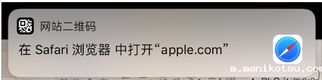 2. 扫描之后,选择在Safari浏览器中打开“apple.com”: