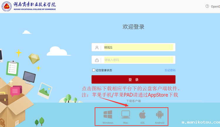 我院校内云盘采用的是来自于上海爱数信息技术股份有限公司的“爱数AnyShare”产品,当前服务器版本号是6.0.13。自当前版本开始,我们采用了客户端定制化技术对校内云盘的WEB端和客户端进行了定制。定制后的客户端软件在登录时不再需要填写服务器地址,界面也做了相应改动(WEB端仍然需要在浏览器输入地址),客户端软件名称变成了“湖南商务云盘”。相关说明如下: