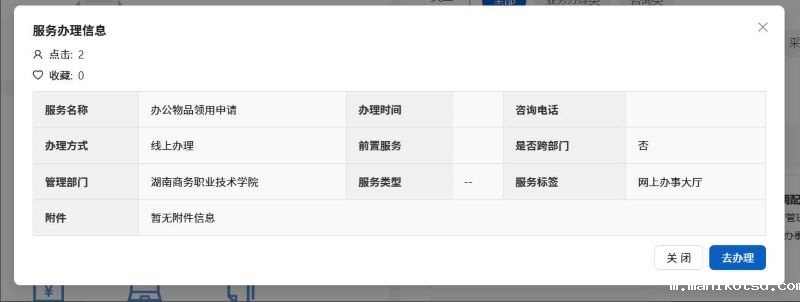 已下图为例,点击“办理”按钮,跳转到申请界面