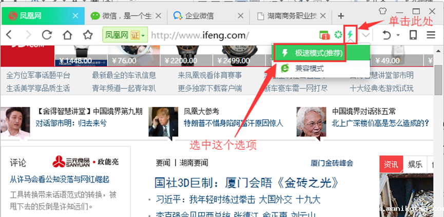 注意:最好使用Google Chrome浏览器,如果您使用的360浏览器,请使用“极速”模式。“极速”模式打开方式如“图一”所示: