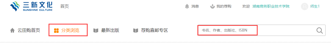除基础中图分类外、更有适宜高校图书馆采选的学科分类展示图书;您可以根据需要点击分类浏览进入书目荐购界面,也可以直接输入书名、作者、出版社等信息进行搜索。