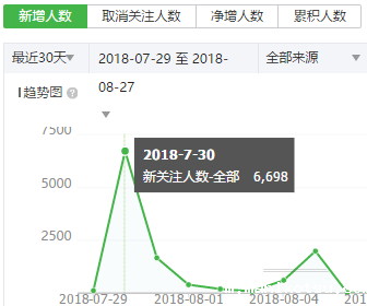 7月25日完成对运营模式的策划,公众号平台的搭建,以及第三方后台的对接!从26日正式开始线上推广前几日主要靠自己向身边的亲戚朋友推广,增粉较慢,但也在短短3天使平台总用户突破了1000位,在29日起开始使用海报裂变模式,通过设置推广拉新奖励,从而刺激那些做网赚的专业人员去推广,短短2天,平台新增人数就达6000多,考虑到这些网推用户的转化率和质量,所以我们降低了推广拉新金额,避免刷粉的存在。同时推广拉新期间,平台点击数和订单数也在不断增加~