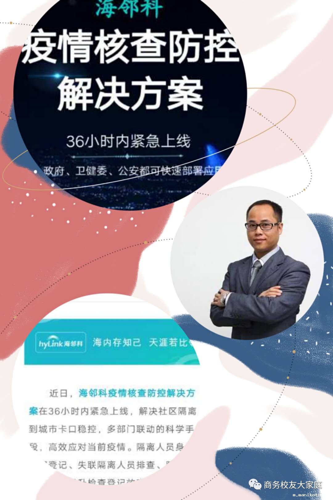 深圳海邻信息技术有限公司副总经理。疫情爆发后,你负责的海邻科疫情防控解决方案在36小时内紧急速上线,此方案基于大数据和互联网,解决了社区到城市卡口稳控多部门高效联运,既减轻了一线压力,又提高了稳控效果,体现了在突发疫情公共事件中,企业应尽的的社会责任及社会价值。