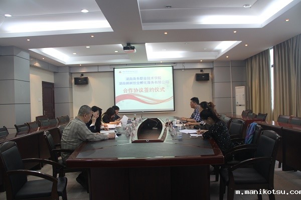 仪式上,陶处长首先对湖南枫树创业孵化服务有限公司一行人的到来表示热烈的欢迎,随后宣读了合作协议条款。经双方讨论确认后,湖南枫树创业孵化服务有限公司胡伟总经理与我院党委委员禹明华教授正式签署了合作协议。